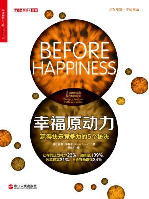 75%的职业成功可以通过哪三件事情来预测?如何变得比奥普拉更富有?为什么重要会议不要安排在午餐或晚餐前?资深销售员和菜鸟销售员有何区别?肖恩·埃科尔通过一个个趣味盎然的真实故事,将积极心理学领域最新的研究成果带到了普通大众的生活中去,揭示了发掘每个人积极特质的实践性技巧。在《快乐竞争力》一书中,埃科尔向读者介绍了成功与快乐之间的关系,提出了“先有快乐,后有成功”的理论。当他开始在世界各地传播这一理念时,埃科尔产生了新的疑惑:为什么有些人能够获得快乐和成功,而相同境遇的另一些人却做不到?这就是本书要解决的问题。这本书可以说是埃科尔第一本书的前传,介绍了激发潜能的5个诀窍或策略,它们能够改变你眼中的现实,帮助你获得成功。众多行业先锋推荐。清华大学心理系主任彭凯平:积极心理学需要大众化和普及化,它不只属于大学和精英阶层,它属于我们每一个人。肖恩从哈佛大学走出来,褪去了积极心理学的神秘面纱,为我们的职场和生活带去幸福的观念、科学的方法。前思科中国区总裁林正刚:如果你想要有一个幸福的人生,你就必须要在1100万比特的信息里面找出你需要的正能量心态,而这本书恰恰就是帮你做成这件事。百度公司总裁张亚勤:如果你想在职场中获得成功,实践《快乐竞争力》中的积极行为准则,将帮你赢得快乐优势。如果你想在生活中创造积极的改变,遵循《幸福原动力》中的五项法则,你的积极特质将大大提升,成功触手可及。